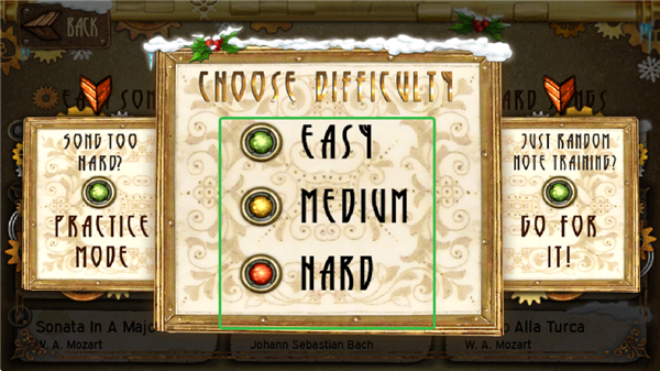 4、選擇演奏難易程度,綠色是簡單,黃色是中等,紅色是困難。