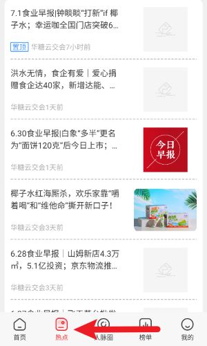 2、點(diǎn)擊底部熱點(diǎn)欄目,可第一時間獲取食品行業(yè)最新資訊與熱點(diǎn)話題內(nèi)容更新。