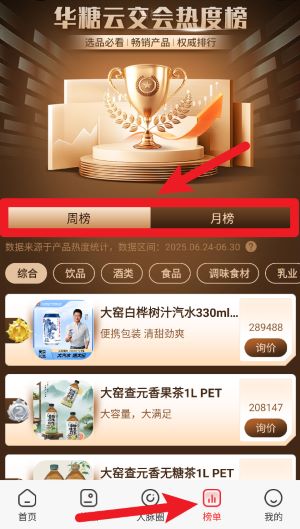 4、在榜單頁面切換周榜或月榜,查看當(dāng)前熱銷產(chǎn)品排名和受關(guān)注商品排行。