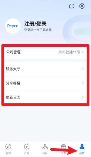 1、打開APP,點擊右下角我的按鈕進入個人中心,可進行公司管理、服務大廳訪問、分享查看更新日志。