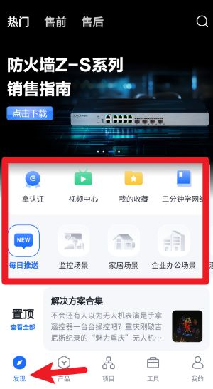 2、點擊左下角發現按鈕,在頁面中部可進入拿認證、視頻中心、收藏夾等功能模塊,獲取更多資訊內容。