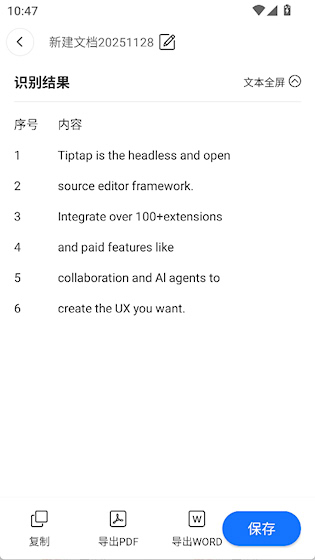 2、多語言文字識別:通過拍照或導入圖片,準確提取其中的文字內容,涵蓋中文、英文、日文等多種語言,方便復制與編輯。