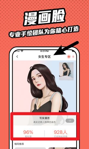 3、點擊漫畫臉功能后上傳照片,系統將根據真人照片由專業團隊繪制還原度極高的個性化漫畫頭像。