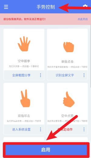 1、在主界面點擊啟用按鈕前,請確保已開啟必要權限,否則軟件將無法正常識別手勢動作。