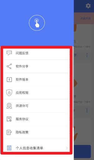 2、點擊左上角菜單圖標可以打開功能菜單,包括問題反饋、版本查看與權限設置等多項操作選項。