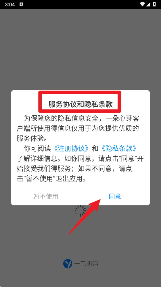 1、首次進入app時,會彈出《服務協議和隱私條款》提示,需仔細閱讀后點擊同意按鈕方可繼續使用。