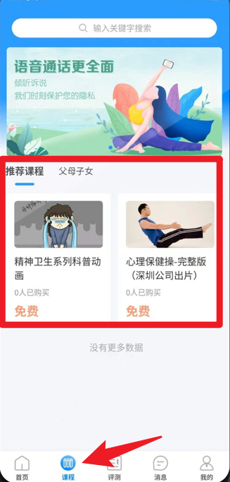 3、在課程板塊,用戶可瀏覽推薦課程,如精神衛生系列科普動畫、心理保健操等內容,點擊即可學習。