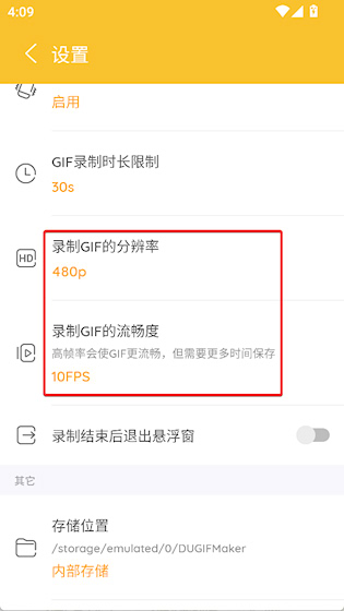 2、找到錄制GIF的分辨率和幀率選項進行更改