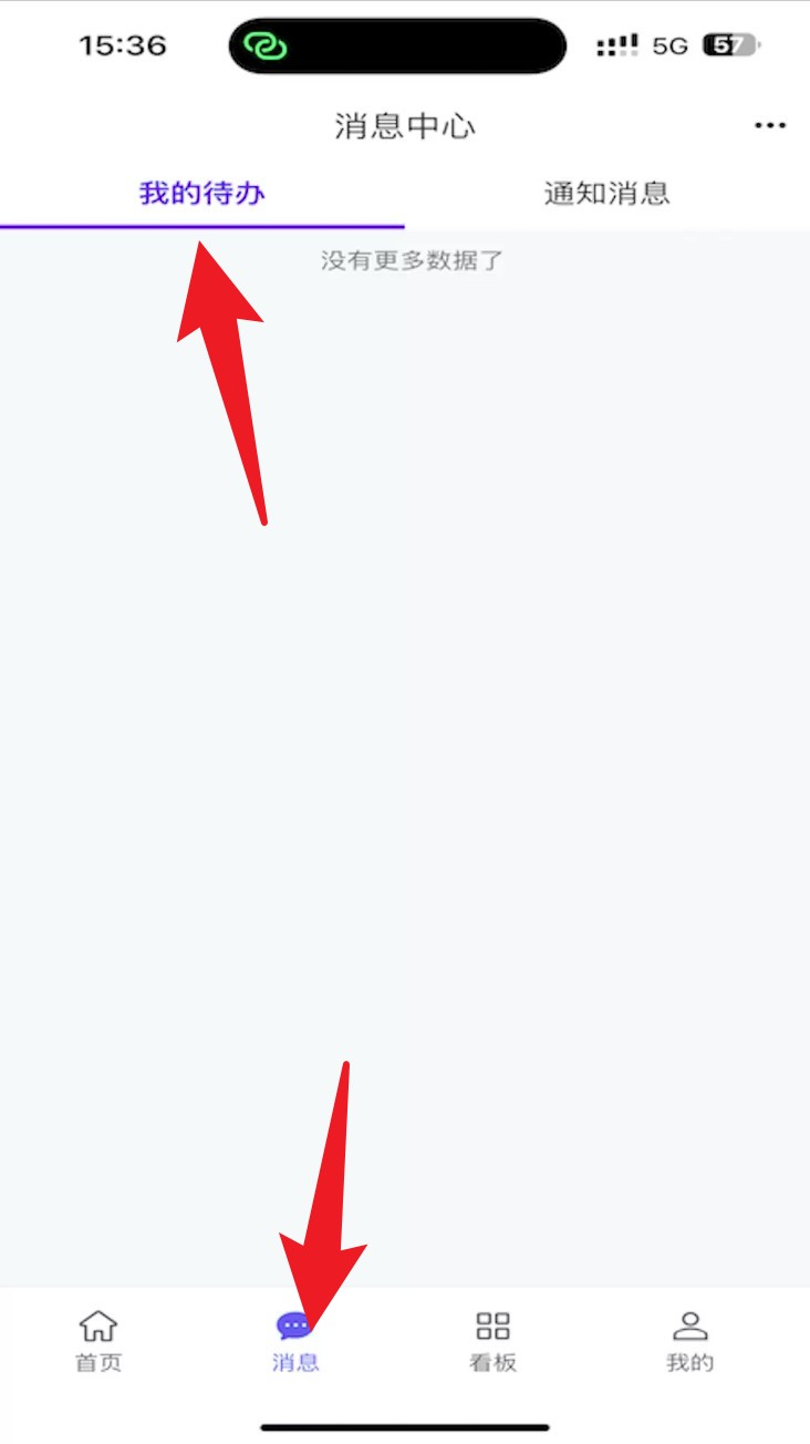 3. 點擊底部導航欄消息進入消息中心,選擇上方我的待辦查看待處理事項。