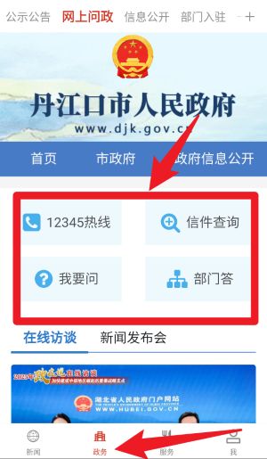 3、在政務板塊,用戶可以信件查詢、12345熱線咨詢、我要問及部門答復等操作,方便與政府部門在線互動。