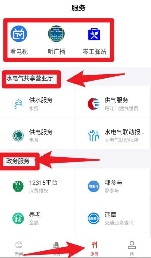 4、在服務板塊,提供電視廣播收聽、零工驛站、政務服務、消費維權、養老、交通違章查詢等便民功能。