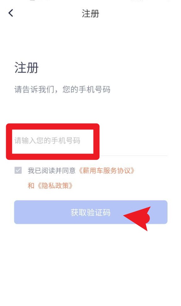1. 打開App后,點擊注冊,輸入手機號后勾選協議,接著點擊下方獲取驗證碼按鈕完成注冊。