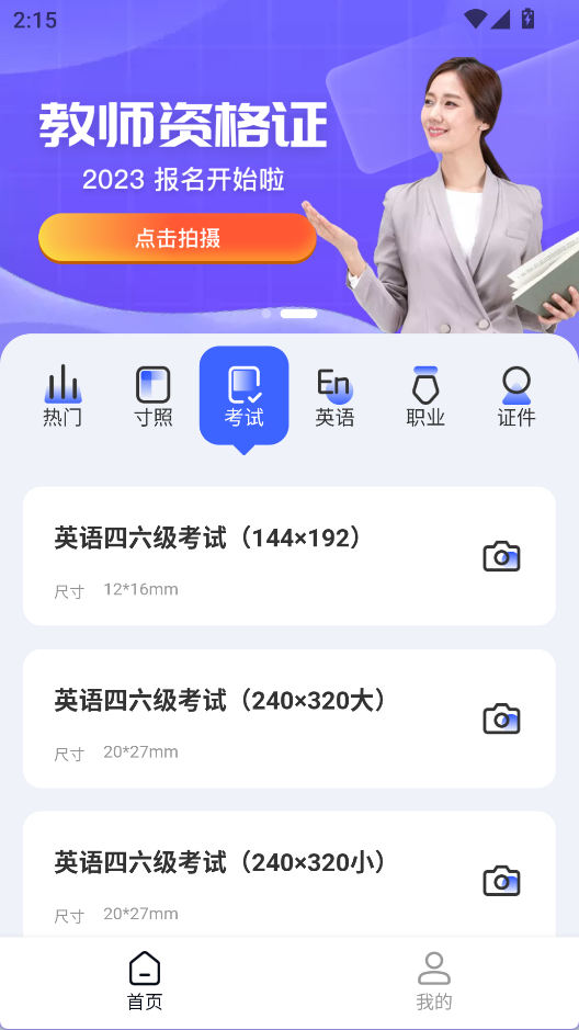 1、規(guī)格齊全:涵蓋各類常見及特殊用途的證件照尺寸,如一寸、兩寸、教師資格證、計(jì)算機(jī)考試等,適配不同場景的官方要求。
