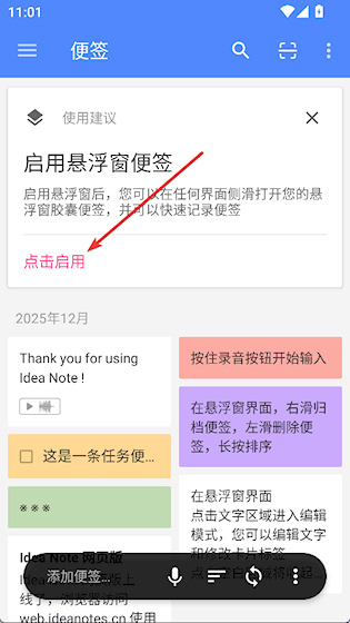 Idea Note是一款靈感記錄應用,能快速捕捉腦海中一閃而過的念頭,通過語音或文字方式即時生成便簽,用懸浮膠囊的形式現實在屏幕邊緣,采用卡片式布局與多種顏色區分不同類型的筆記,便于分類和回顧,適合需要隨時記事、整理思路的人群使用。