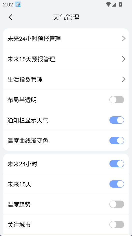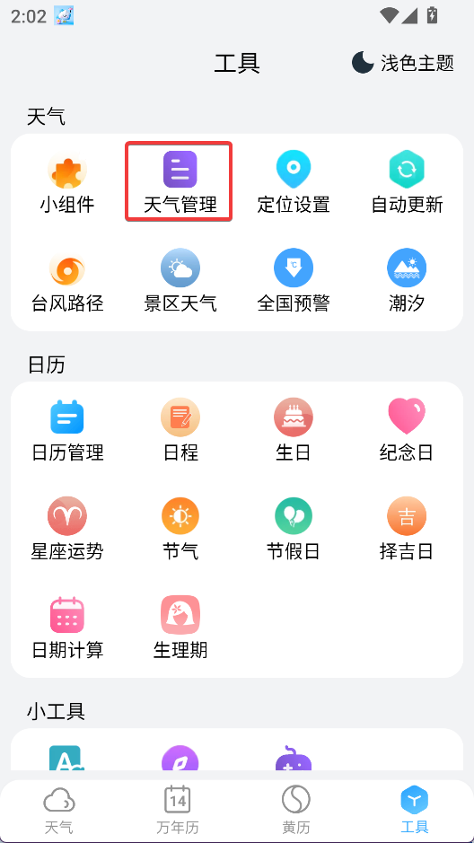 2、找到天氣管理功能,點擊進入