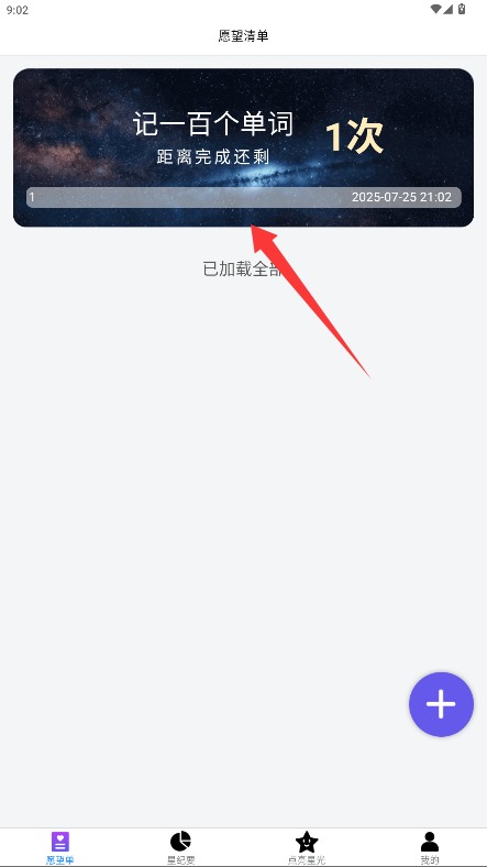4、已創建的愿望會顯示在列表中,點擊對應條目即可進行每日進度打卡記錄。