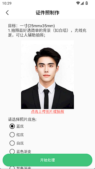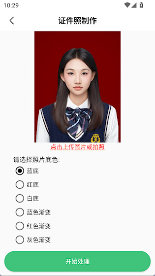 2、選擇照片底色,點(diǎn)擊上傳圖片或拍照