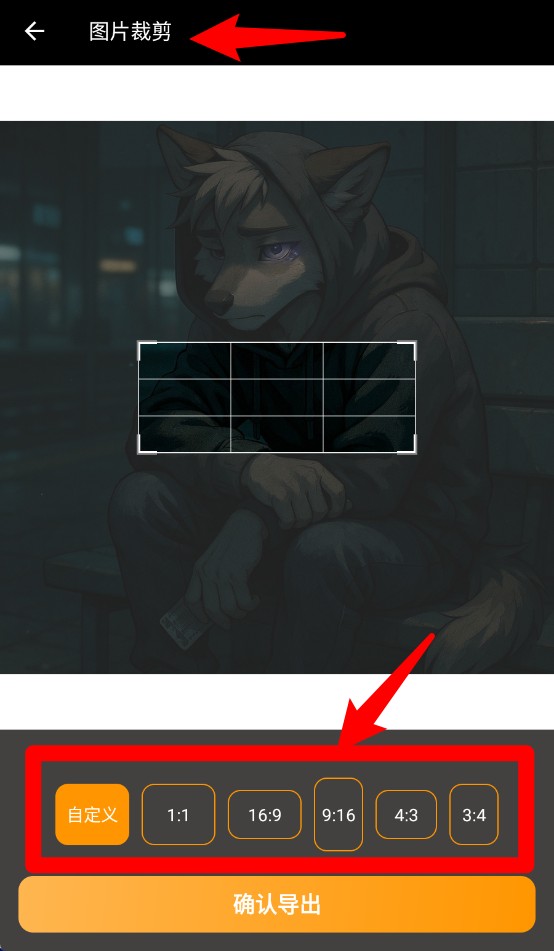 3、圖片裁剪支持多種比例,用戶可自由選擇1:1、9:16等格式進行自定義裁切。