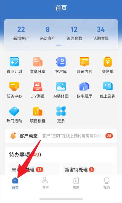 2、在首頁查看今日待辦任務,及時處理客戶跟進提醒。