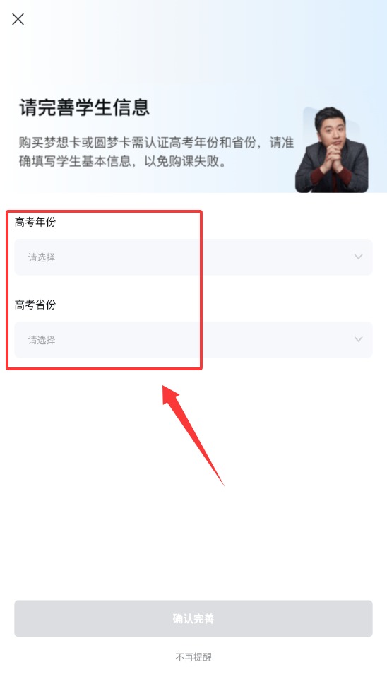 3、登錄后需完善學(xué)生個(gè)人信息,包括年級、學(xué)科等學(xué)習(xí)相關(guān)數(shù)據(jù)以便獲取個(gè)性化教育內(nèi)容。
