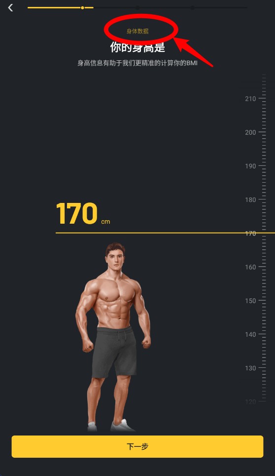 1、打開APP之后,填寫身高體重等信息,生成個性化訓練計劃。