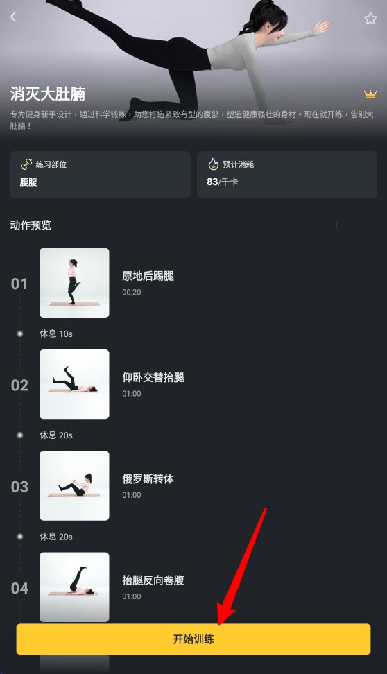 3、進入課程后,觀看真人視頻示范,跟隨動作進行訓練。