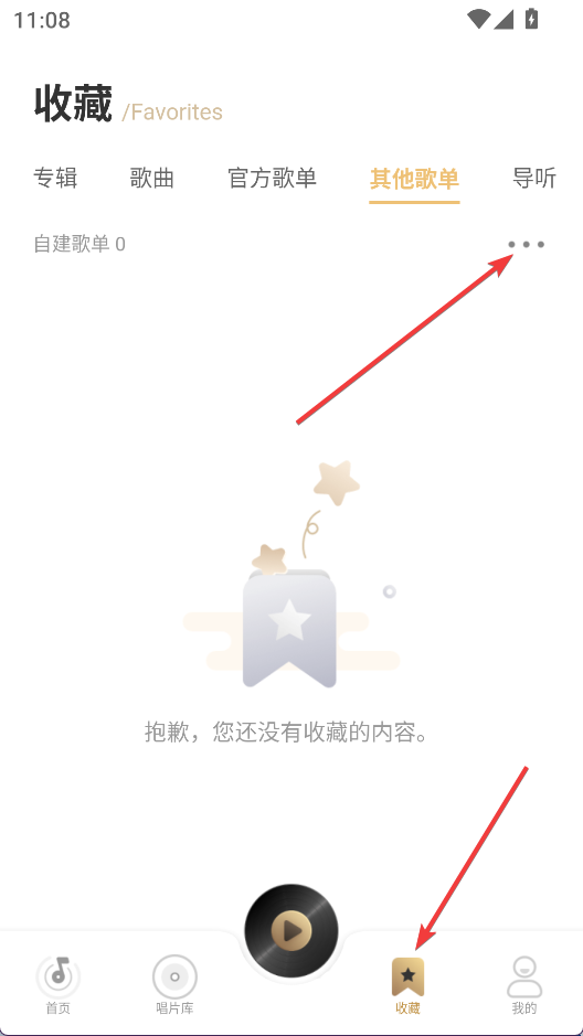 1、進(jìn)入收藏界面,在其他歌單欄目里點(diǎn)擊三點(diǎn)按鈕