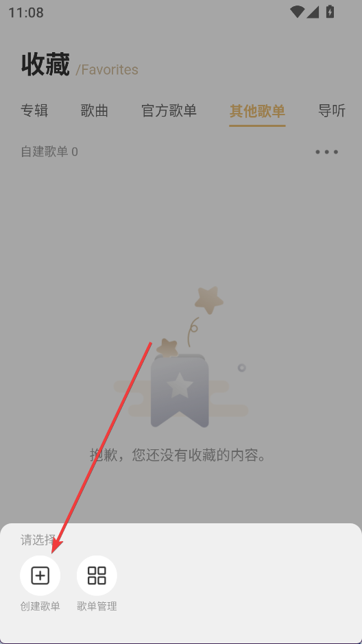 2、點(diǎn)擊左下角創(chuàng)建歌單