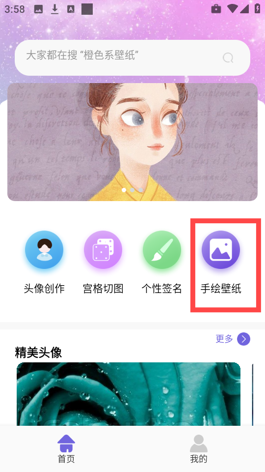 2、首頁找到“手繪壁紙”入口,點擊進入對應(yīng)功能界面;