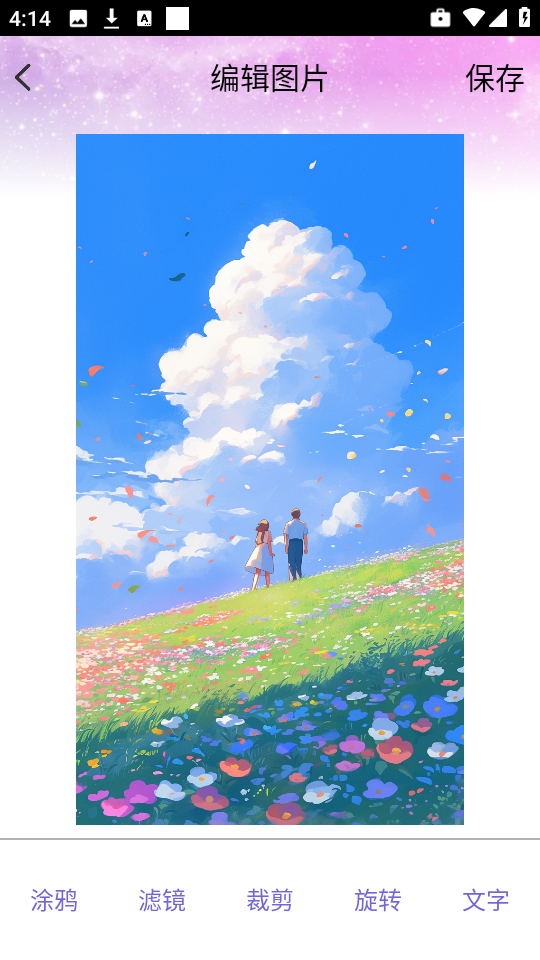 5、編輯界面可自由涂鴉、添加濾鏡、裁剪旋轉(zhuǎn)或插入文字,打造獨特作品;