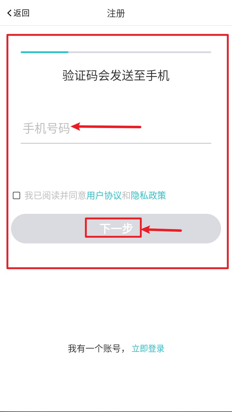 2. 若還未注冊賬號,可點擊下方立即注冊,通過手機號驗證完成注冊綁定操作。