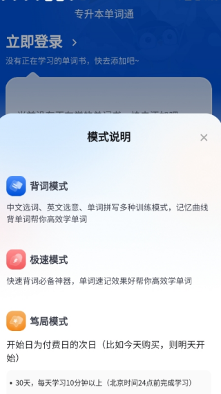 2、詞庫功能區附帶模式說明,可按需挑選最適配的學習方式;