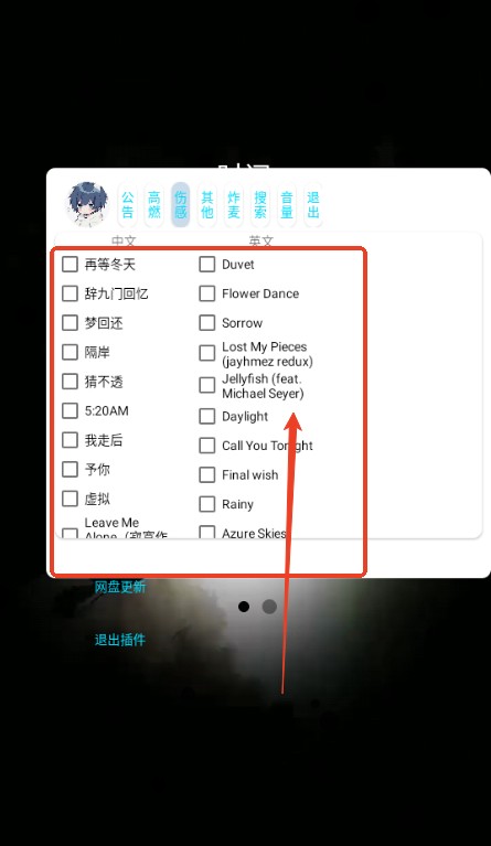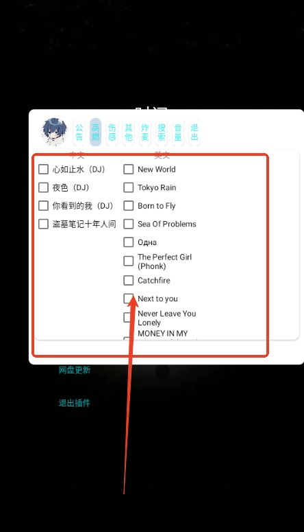 3、軟件內(nèi)可查看公告、搜索音樂(lè)、調(diào)整音量等,操作便捷。