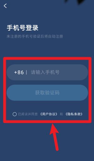1、打開應用進入登錄界面,輸入手機號并獲取驗證碼,首次登錄將自動完成注冊流程。