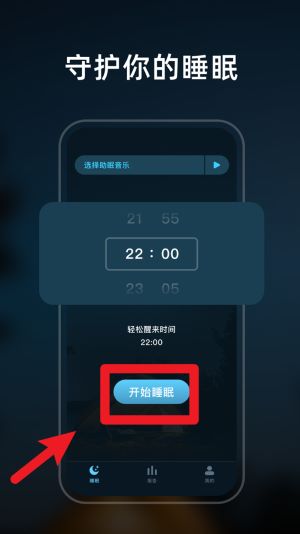 5、設置入睡時間后點擊開始睡眠按鈕,應用將進入守護模式記錄全程睡眠狀態。
