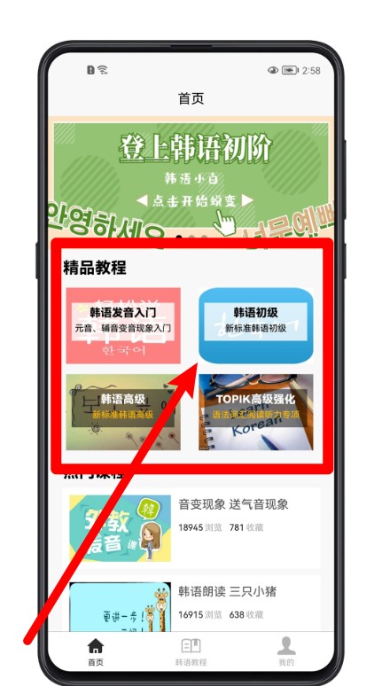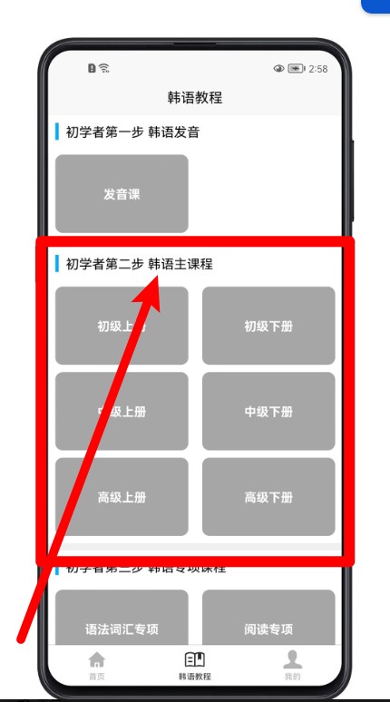 2.初學者第二步進入韓語主課程,按級別挑選,從初級到高級上冊下冊,進度自由掌握。