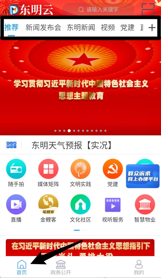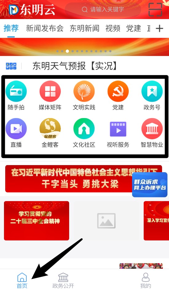 2、在首頁功能區你可以看到如隨手拍、黨建、政務號等模塊,點擊對應圖標即可進入相應服務頁面。