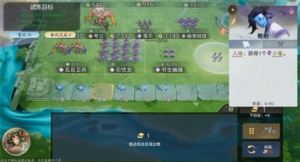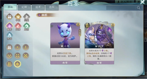 4)【小鬼】是地府的特殊部從,不僅可以上場作為戰士提供戰力,還可以出售作為經濟資源,最重要的是:數量達到100后ta將變成幽都最高戰力:閻羅!
