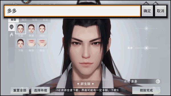 4、接著,在這里輸入漢字昵稱后選擇并點擊“捏臉完成”的選項;
