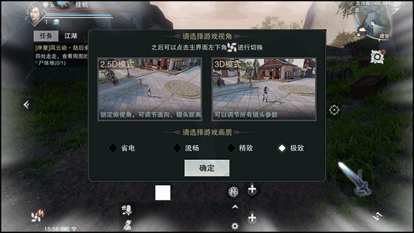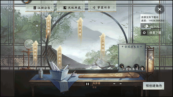1、運行游戲后,在標題界面選擇并點擊“踏入江湖”的選項;