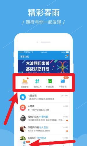 2、進(jìn)入首頁后可使用答題管理、查詢工具、積分任務(wù)和今日必讀等核心功能模塊進(jìn)行消息操作。