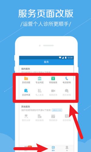 4、服務(wù)頁面全新改版,提供系統(tǒng)題庫、專業(yè)判定、特色服務(wù)、電話咨詢等個(gè)人診所運(yùn)營支持功能。