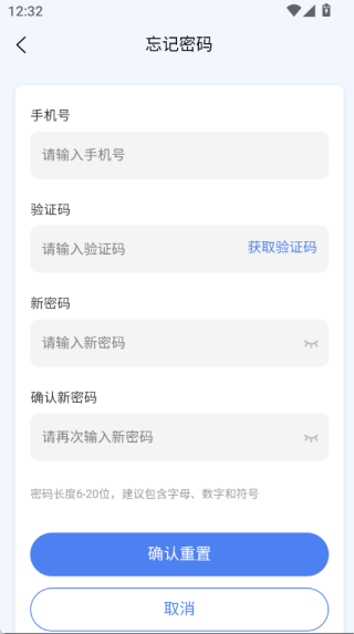 3、若忘記密碼,輸入手機號碼驗證信息后,點擊確認即可重置密碼;