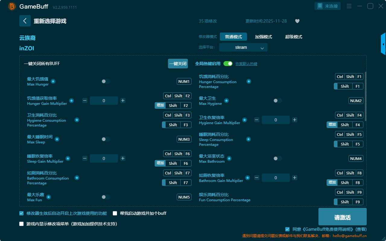 云族裔三十五項修改器是一款操作極其簡單的游戲輔助修改器工具,功能也很強大實用,支持一鍵設置擁有最大饑餓值、最大衛生、衛生恢復倍率、睡眠消耗百分比、最大浴室狀態、如廁恢復倍率、娛樂消耗百分比、最大樂趣、最大能量、最大知名度、業力獲取倍率等三十五項功能內容,感興趣的玩家快來本站下載體驗一下吧!