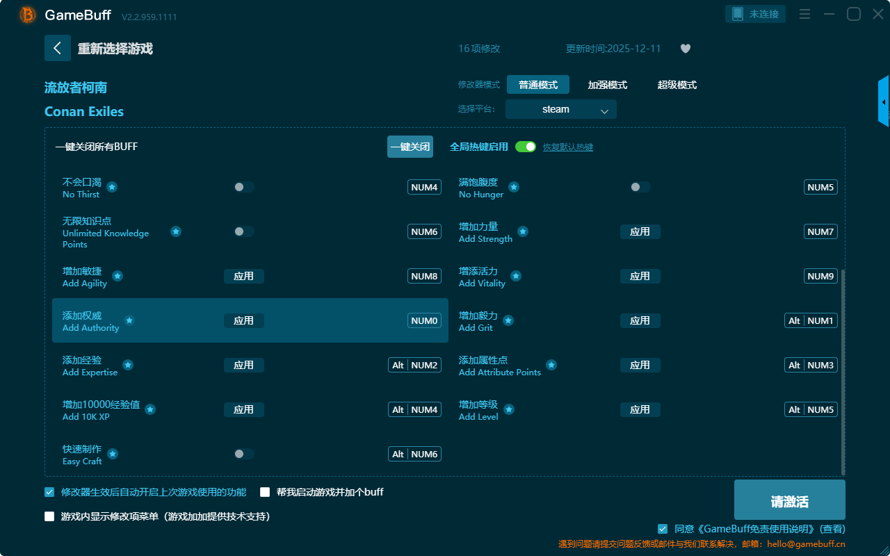 流放者柯南十六項修改器是一款根據在流放者柯南這款游戲中遇到的困難挑戰自由設置擁有無限生命、無限體力、滿飽腹度、增加力量、增添活力、增加毅力、增加敏捷、不會口渴、隱身模式、添加權威、無限知識點、增加等級、添加屬性點、添加經驗、快速制作等十六項功能內容,操作十分簡單,感興趣的玩家不要錯過哦!
