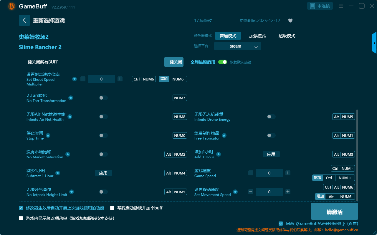 史萊姆牧場2十七項修改器是一款根據史萊姆牧場2這款游戲遇到的困難自由設置擁有無限生命、無限物品、無限能量、最大槽位900、無限無人機能量、免費制作物品、停止時間、設置射擊速度倍率、沒有市場飽和、增加1小時、游戲速度、免費制作物品、設置移動速度、無限噴氣背包等十七項功能內容,感興趣的玩家千萬不要錯過哦!