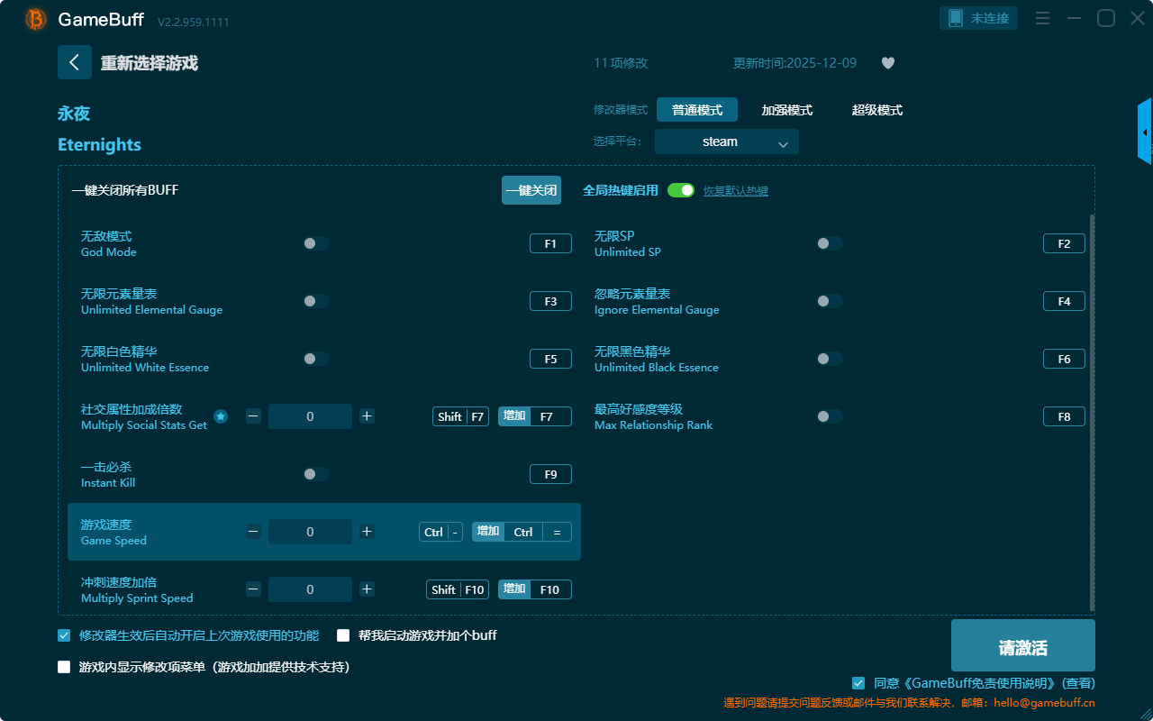 永夜十一項修改器是一款功能強大實用的游戲輔助修改器工具,操作也很簡單,支持一鍵設置擁有無敵模式、無限SP、忽略元素量表、無限黑色精華、最高好感度等級、一擊必殺、游戲速度、沖刺速度加倍、無限白色精華、社交屬性加成倍率等十一項功能內(nèi)容,感興趣的玩家千萬不要錯過哦!