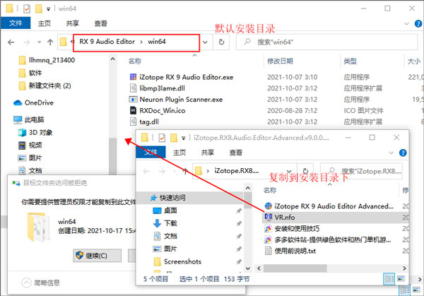 5、將原文件夾中VR.nfo文件復制到安裝目錄,默認路徑為【C:\Program Files\iZotope\RX 9 Audio Editor\win64】;