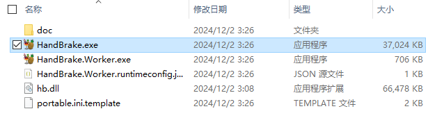 1、在當(dāng)游網(wǎng)下載HandBrake綠色版并解壓,打開解壓后的HandBrake.exe文件;