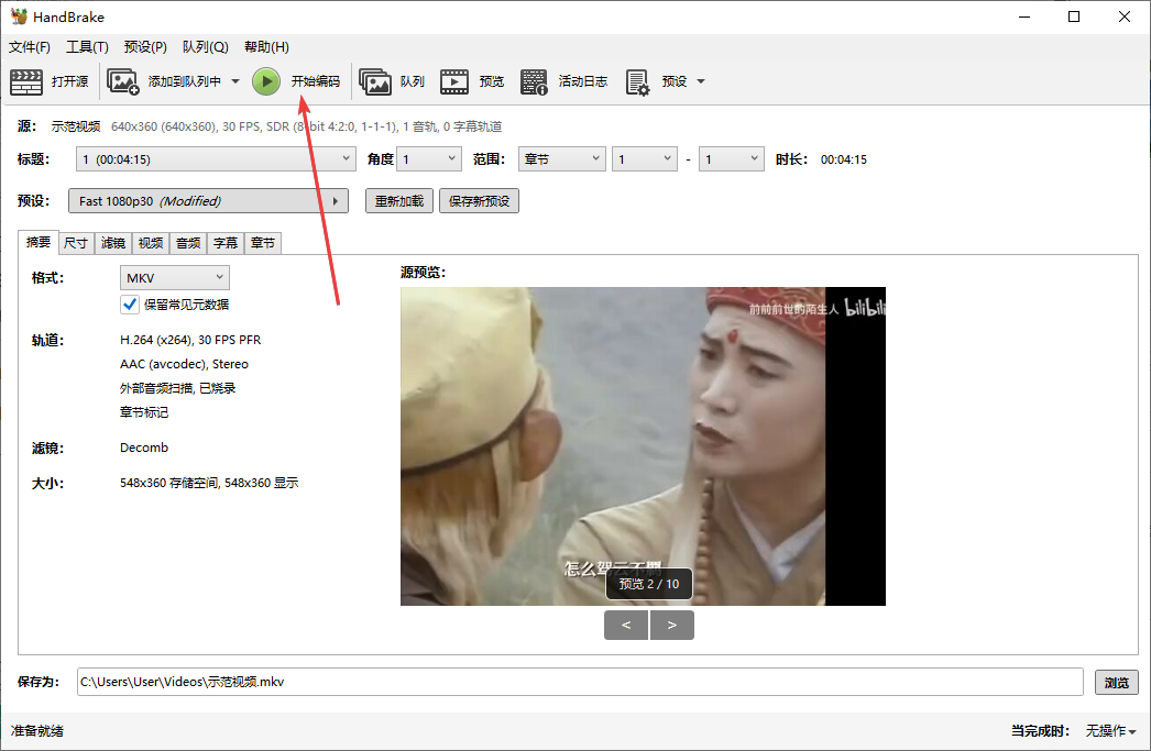 5、完成設(shè)置后,點(diǎn)擊上方工具欄【開始編碼】啟動(dòng)轉(zhuǎn)換;